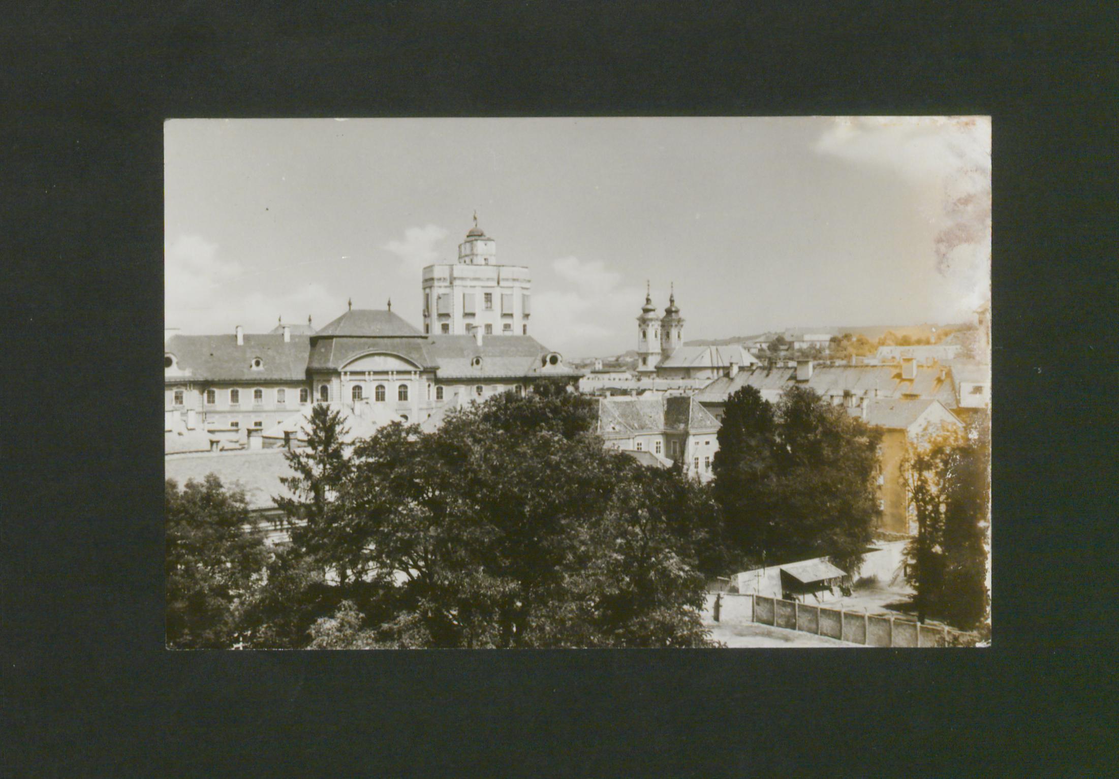 Az épuletet Gerl József tervezte, az építtető Eszterházy Károly puspok elgondolt egyetem befogadására. Gerlt Fellner Jakab kovette posztján, aki Gerl tervei szerint folytatta a munkát, csupán a főhomlokzatot módosította, bővítette az ajtó- és ablakméreteket, a sotétkamrát. Az épulet a barokk, a copf és a rokokó stílust mutatja. A négyzet alakú udvart korulzáró, jórészt szimmetrikus épuletszárnyak hossza 85, magassága 21 méter. Az első emeleten három nagyméretű, két emelet magasságú termet alakítottak ki, mindegyiket freskó díszíti. A főhomlokzat nyugati szárnyán találjuk a bazilikára néző dísztermet, a déli fronton kapott helyet a díszes kivitelű Főegyházmegyei Konyvtár, az északi oldal nagytermében a régi intézeti kápolna műkodott. Az épulet hátsó, keleti traktusa folott emelkedik az 53 méter magas csillagászati torony. Eszterházy négy fakultással műkodő egyetemet álmodott meg, de 1774-es megnyitásakor csak három, a jogi, a teológiai és a filozófiai képzések indulhattak el. Az 1828-ban alapított első magyar nyelvű tanítóképző iskolát is ide helyezték át 1852-ben. 1950-ben a főiskola onállósult és tanárképző főiskolaként vált ismertté az országban. Ma már építtetőjének, Eszterházy Károlynak a nevét viseli.
