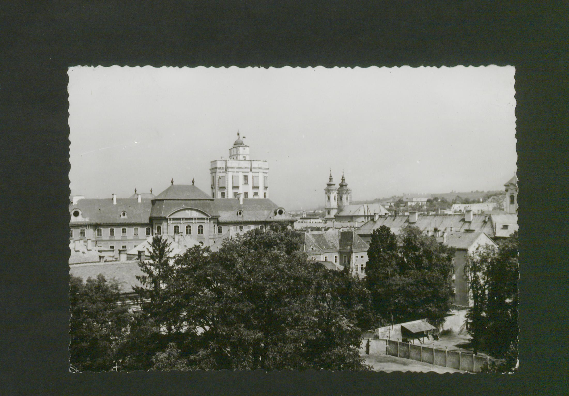 Az épuletet Gerl József tervezte, az építtető Eszterházy Károly puspok elgondolt egyetem befogadására. Gerlt Fellner Jakab kovette posztján, aki Gerl tervei szerint folytatta a munkát, csupán a főhomlokzatot módosította, bővítette az ajtó- és ablakméreteket, a sotétkamrát. Az épulet a barokk, a copf és a rokokó stílust mutatja. A négyzet alakú udvart korulzáró, jórészt szimmetrikus épuletszárnyak hossza 85, magassága 21 méter. Az első emeleten három nagyméretű, két emelet magasságú termet alakítottak ki, mindegyiket freskó díszíti. A főhomlokzat nyugati szárnyán találjuk a bazilikára néző dísztermet, a déli fronton kapott helyet a díszes kivitelű Főegyházmegyei Konyvtár, az északi oldal nagytermében a régi intézeti kápolna műkodott. Az épulet hátsó, keleti traktusa folott emelkedik az 53 méter magas csillagászati torony. Eszterházy négy fakultással műkodő egyetemet álmodott meg, de 1774-es megnyitásakor csak három, a jogi, a teológiai és a filozófiai képzések indulhattak el. Az 1828-ban alapított első magyar nyelvű tanítóképző iskolát is ide helyezték át 1852-ben. 1950-ben a főiskola onállósult és tanárképző főiskolaként vált ismertté az országban. Ma már építtetőjének, Eszterházy Károlynak a nevét viseli.
