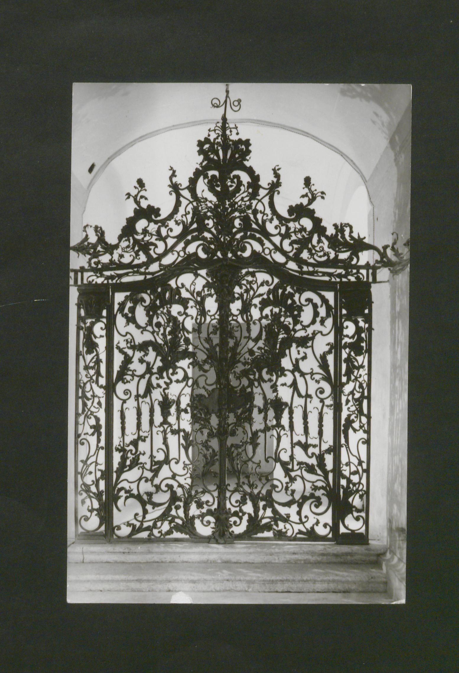 A Kossuth Lajos utca 9. sz. alatt álló Megyeháza épületét díszíti. Fazola Henrik (Würzburg, 1730 - Diósgyőr, 1779) vasműves munkája, akit Barkóczy Ferenc egri püspök hívott Egerbe. A két kapu a rokokó művészet legszebb művei közé tartozik, 1758-1761 között készült. A címeres kapu a jobb oldalon, eredeti helyén áll. A baloldali szőlőfürtös kapu eredetileg a második emeleten, az ülésterem és a lépcsőház között állt. A címeres kapun három címer látható, az első az építtető, Barkóczy Ferencé, a középső az ország, a harmadik pedig Eger címere. A szemközti kapu a szőlőfürtjein, vesszőin, indáin kívül más növényábrázolásokkal is gazdagon díszített. A címeres kapu külön érdekessége a kilincs, ami egy bohócot ábrázol. A főkapu feletti félköríves betétrács díszítés is Fazola Henrik munkája. A díszrácson három aranyozott szobor áll: a Hit, a Remény és az Igazság allegóriái.