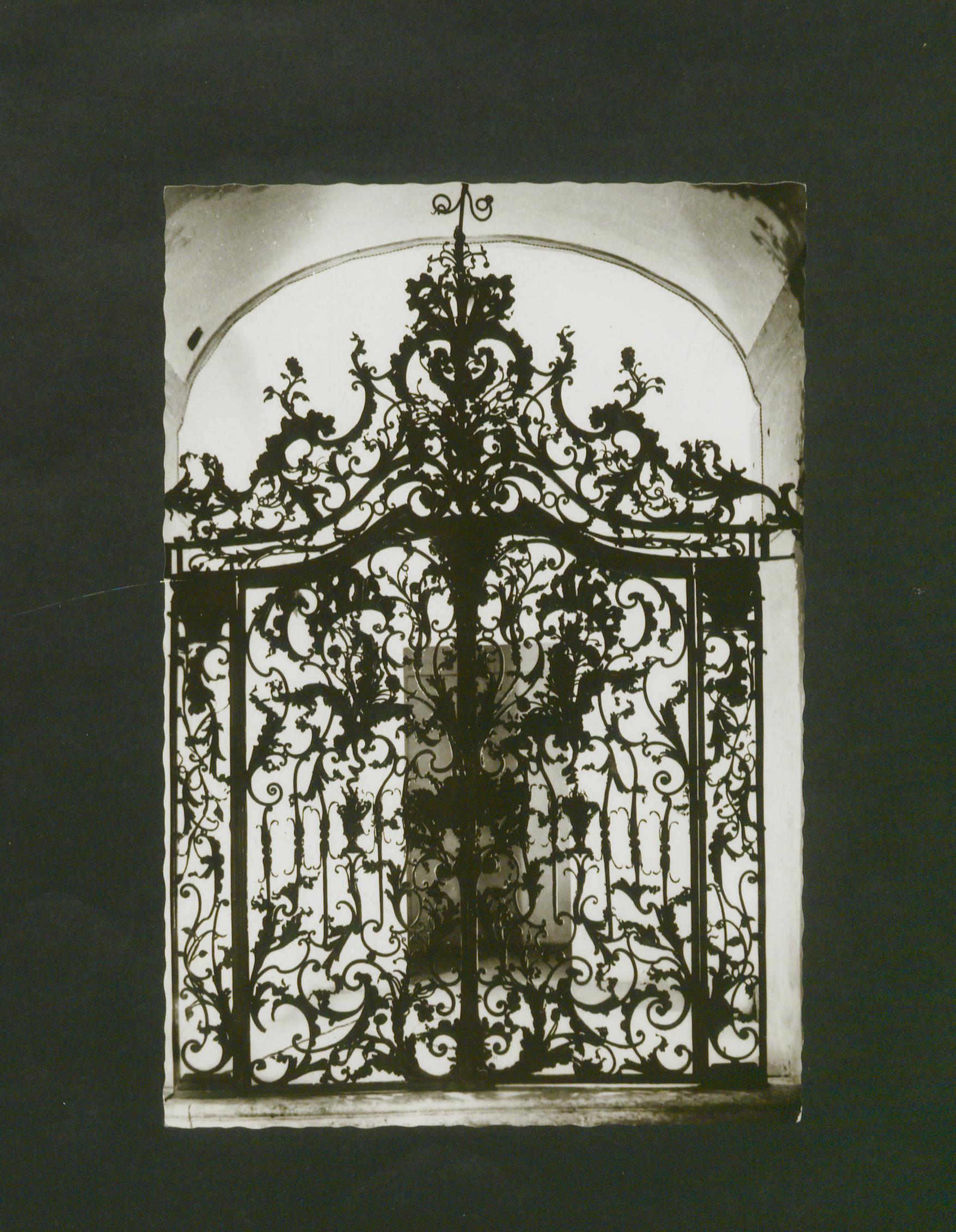 A Kossuth Lajos utca 9. sz. alatt álló Megyeháza épületét díszíti. Fazola Henrik (Würzburg, 1730 - Diósgyőr, 1779) vasműves munkája, akit Barkóczy Ferenc egri püspök hívott Egerbe. A két kapu a rokokó művészet legszebb művei közé tartozik, 1758-1761 között készült. A címeres kapu a jobb oldalon, eredeti helyén áll. A baloldali szőlőfürtös kapu eredetileg a második emeleten, az ülésterem és a lépcsőház között állt. A címeres kapun három címer látható, az első az építtető, Barkóczy Ferencé, a középső az ország, a harmadik pedig Eger címere. A szemközti kapu a szőlőfürtjein, vesszőin, indáin kívül más növényábrázolásokkal is gazdagon díszített. A címeres kapu külön érdekessége a kilincs, ami egy bohócot ábrázol. A főkapu feletti félköríves betétrács díszítés is Fazola Henrik munkája. A díszrácson három aranyozott szobor áll: a Hit, a Remény és az Igazság allegóriái.