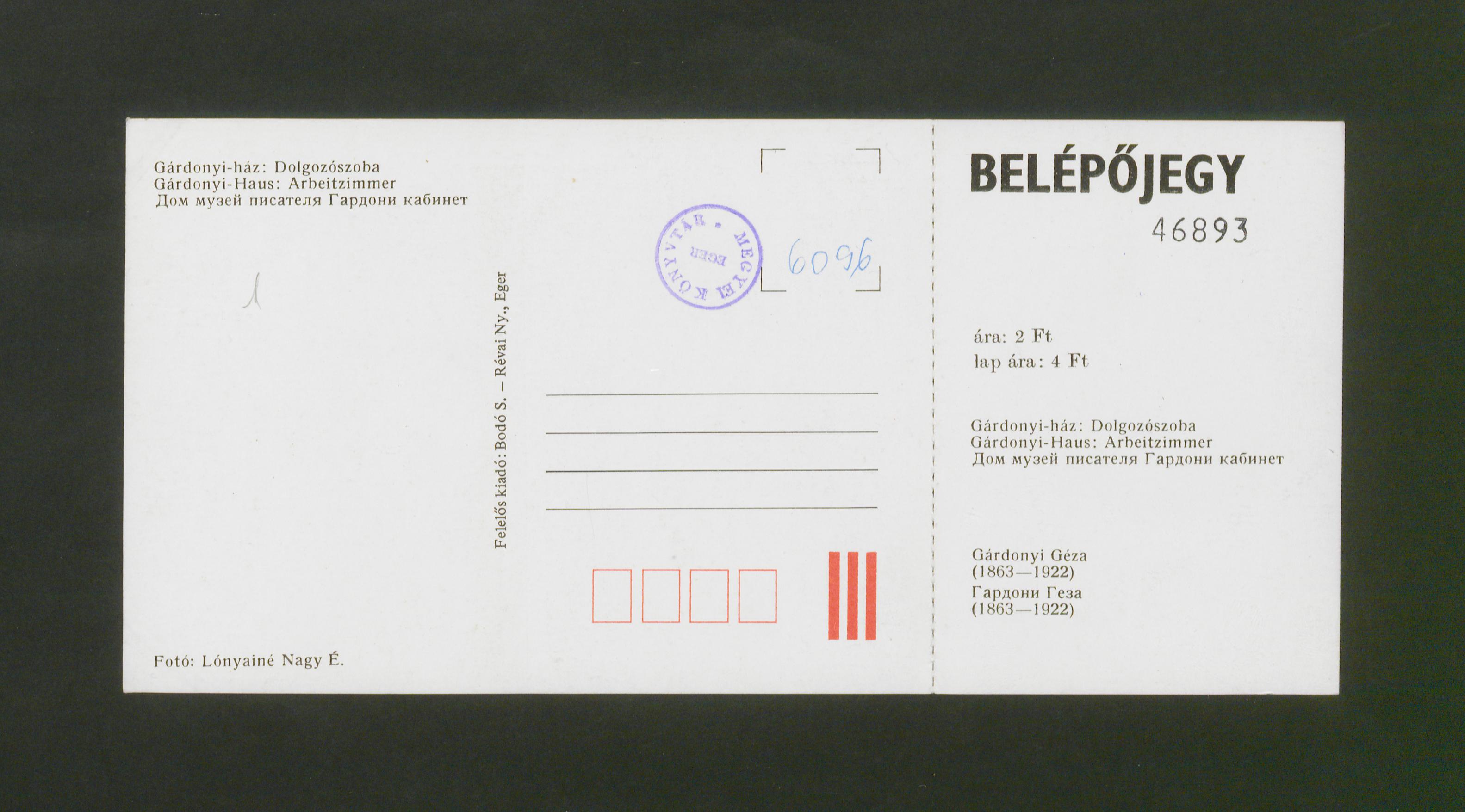 | dc.description | A képeslap része a 46893 sorszámú letéphető belépőjegy (ára: 2,-Ft, lap ára: 4,-Ft) | |