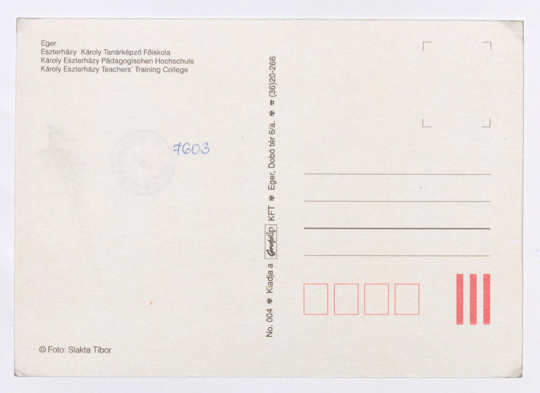 Eger : Eszterházy Károly Tanárképző Főiskola : Károly Eszterházy Pädagogischen Hochschule : Károly Eszterházy Teachers' Training College