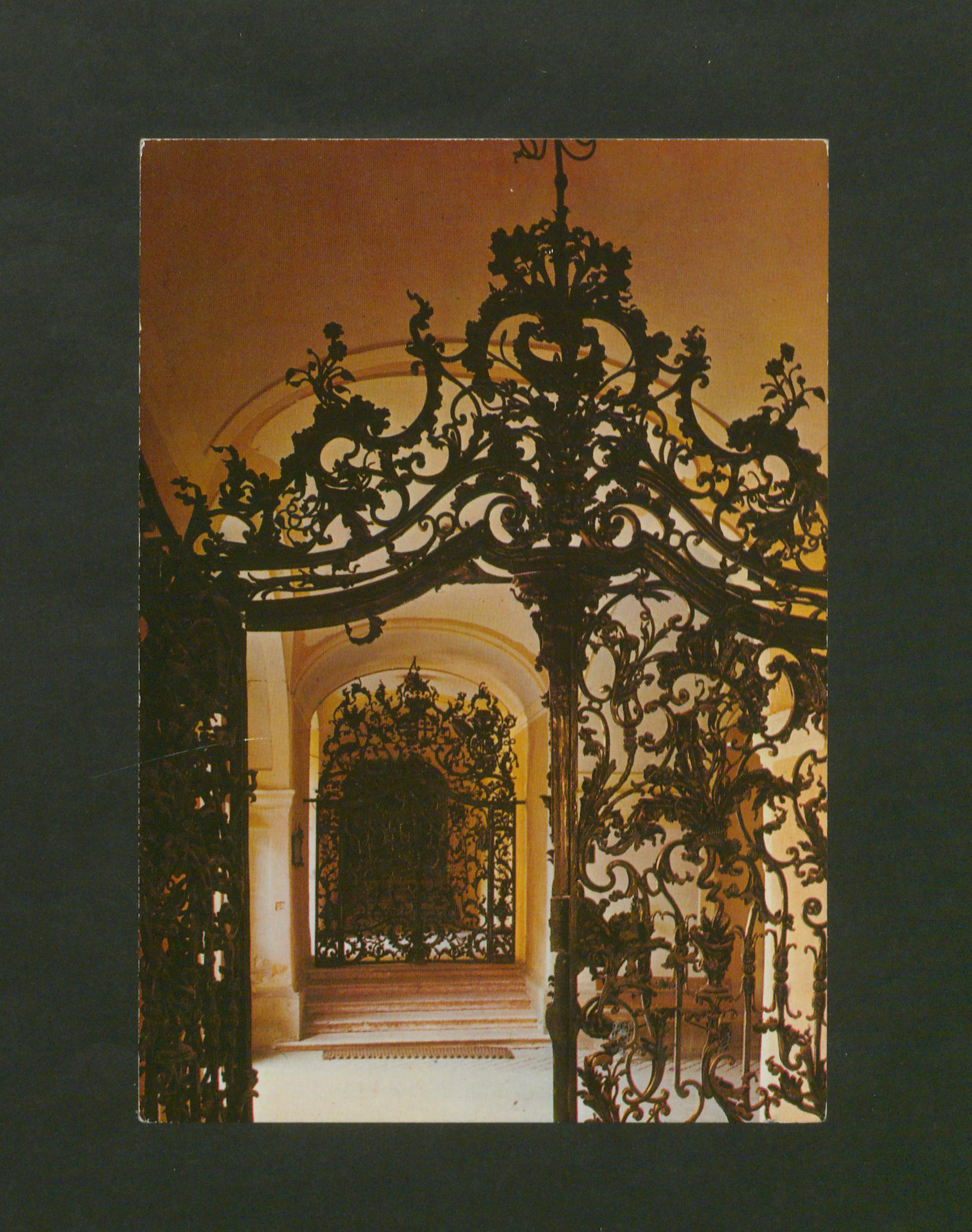A Kossuth Lajos utca 9. sz. alatt álló Megyeháza épületét díszíti. Fazola Henrik (Würzburg, 1730 - Diósgyőr, 1779) vasműves munkája, akit Barkóczy Ferenc egri püspök hívott Egerbe. A két kapu a rokokó művészet legszebb művei közé tartozik, 1758-1761 között készült. A címeres kapu a jobb oldalon, eredeti helyén áll. A baloldali szőlőfürtös kapu eredetileg a második emeleten, az ülésterem és a lépcsőház között állt. A címeres kapun három címer látható, az első az építtető, Barkóczy Ferencé, a középső az ország, a harmadik pedig Eger címere. A szemközti kapu a szőlőfürtjein, vesszőin, indáin kívül más növényábrázolásokkal is gazdagon díszített. A címeres kapu külön érdekessége a kilincs, ami egy bohócot ábrázol. A főkapu feletti félköríves betétrács díszítés is Fazola Henrik munkája. A díszrácson három aranyozott szobor áll: a Hit, a Remény és az Igazság allegóriái.